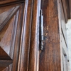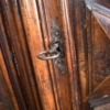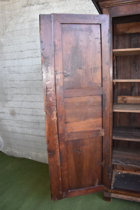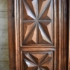 frontale in noce, pannelli laterali in rovere; intagliato con motivo a punta di diamante, apertura a 2 ante, serramenti originali. 700.