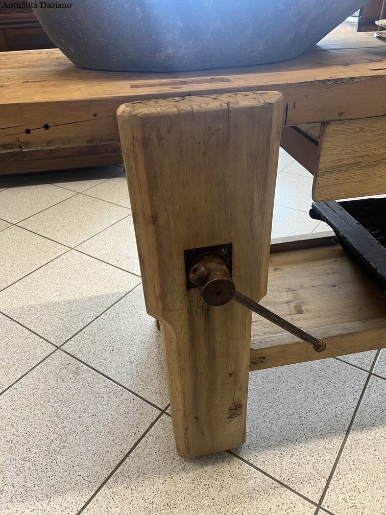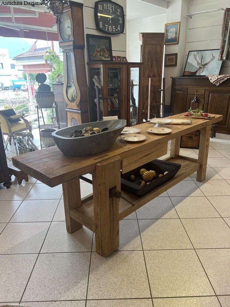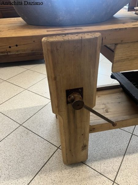Dimensioni: Lunghezza 256 cm – Larghezza piano 50 cm – Larghezza massima compreso morsa 60 cm- Altezza 80 cm