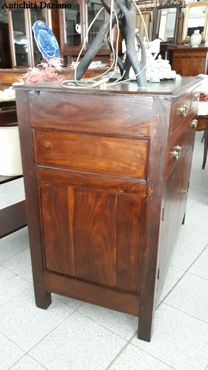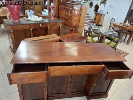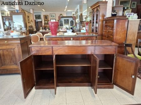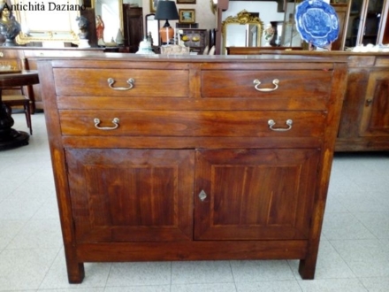 con 3 cassetti nella parte superiore, in quella inferiore 2 sportelli laterali ed un doppio sportello al centro.