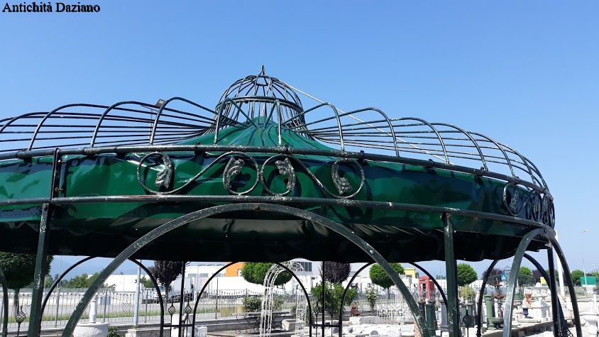 stile Liberty con inserti forgiati a torciglione, completamente smontabile, pianta ottagonale.