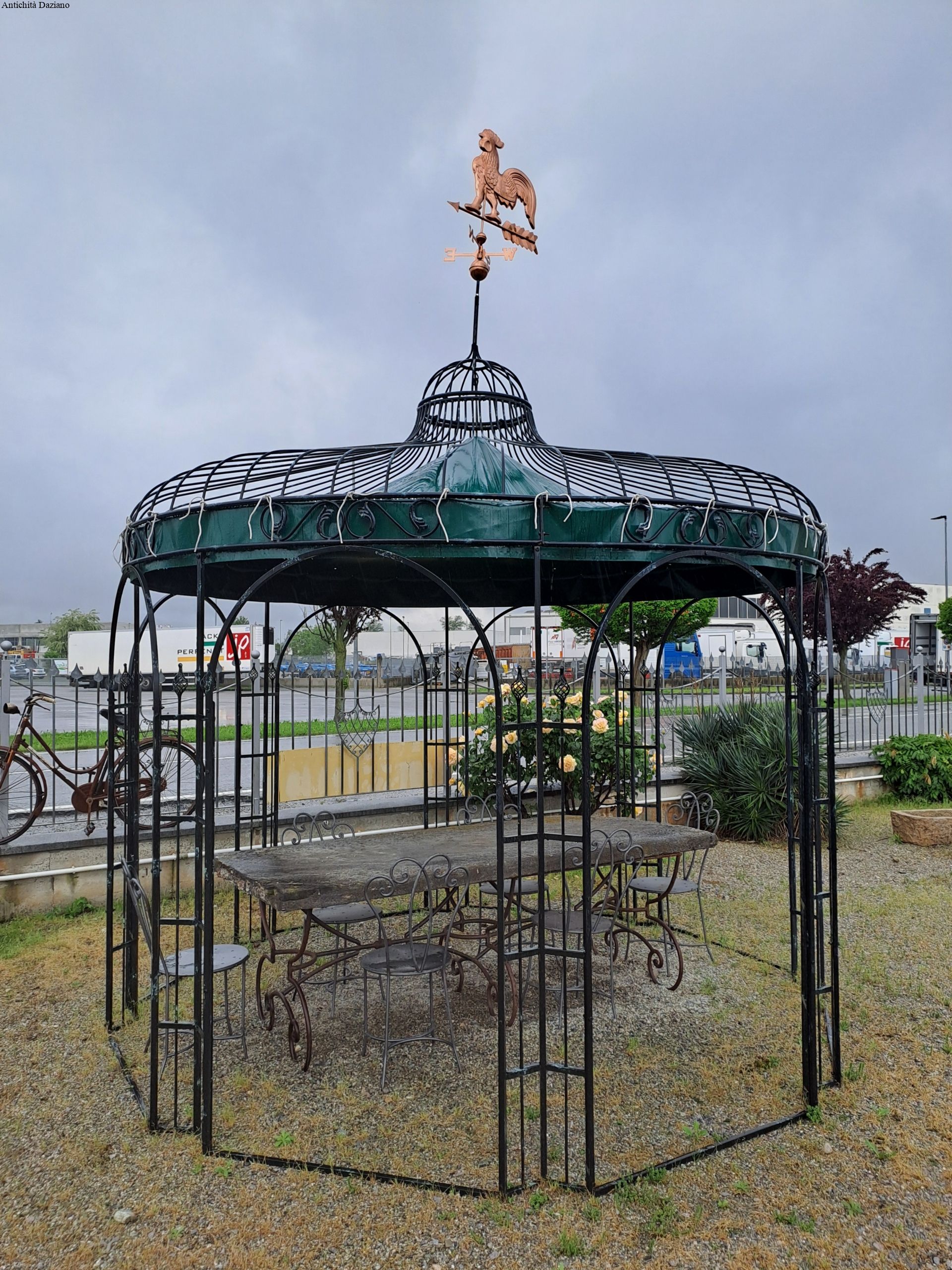 stile Liberty con inserti forgiati a torciglione, completamente smontabile, pianta ottagonale.