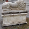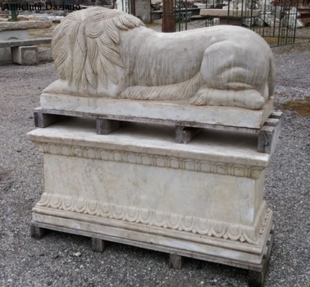 COPPIA DI LEONI IN MARMO CON BASAMENTO L. 120 – H. 100 – P. 43 cm.