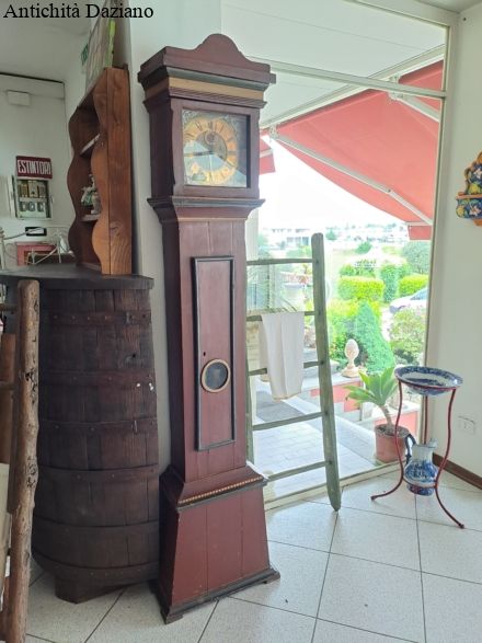 Struttura in legno di pino dipinta e laccata con un motivo a fiori sul frontale.Pendolo completo, meccanismo funzionante.