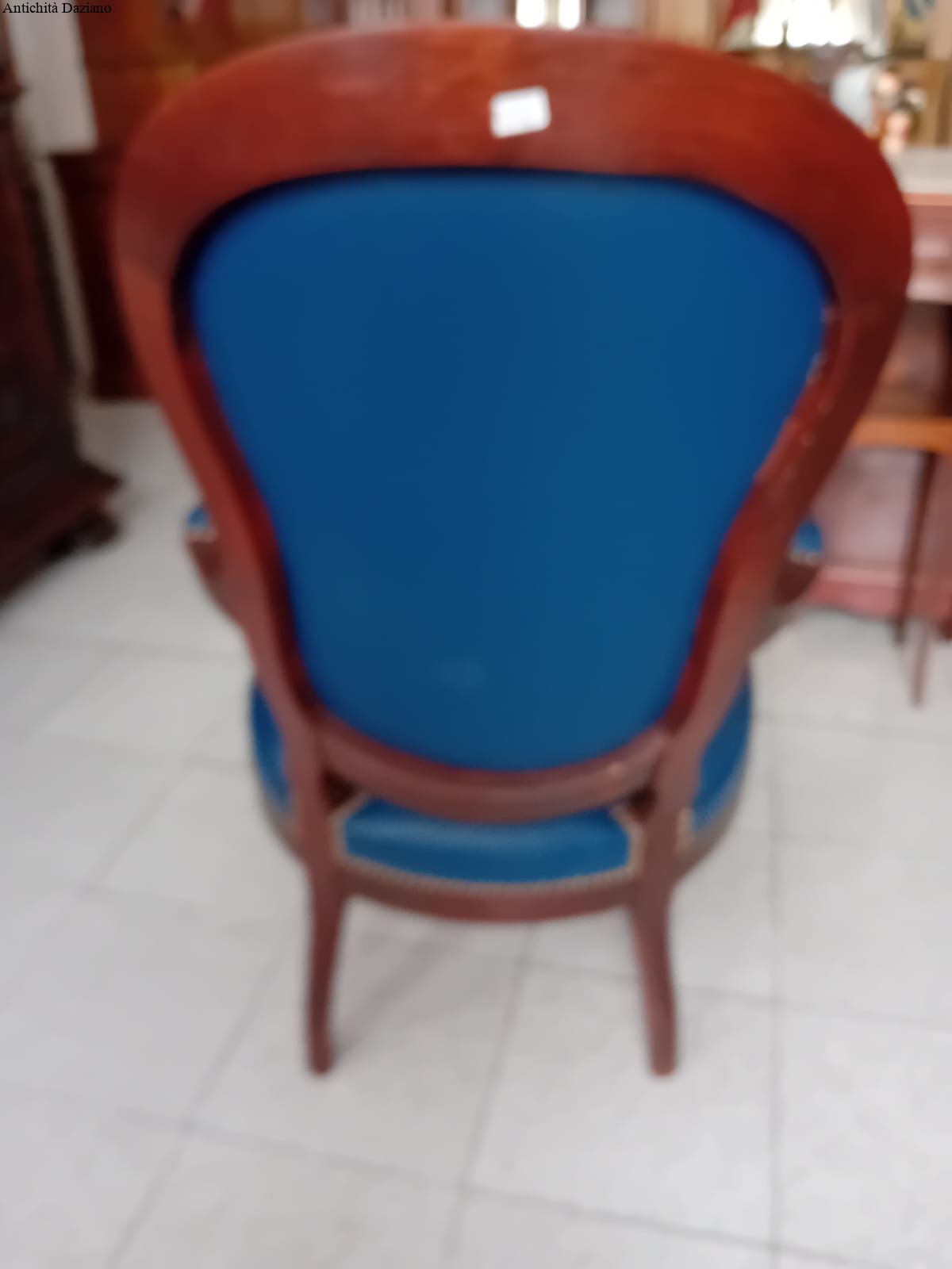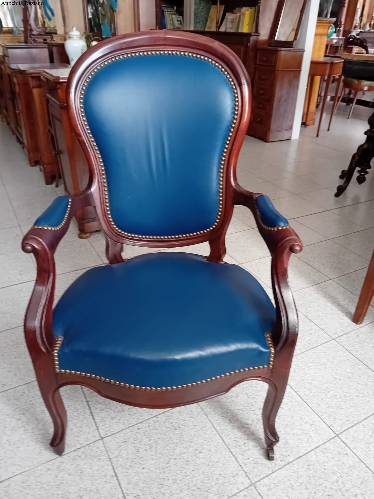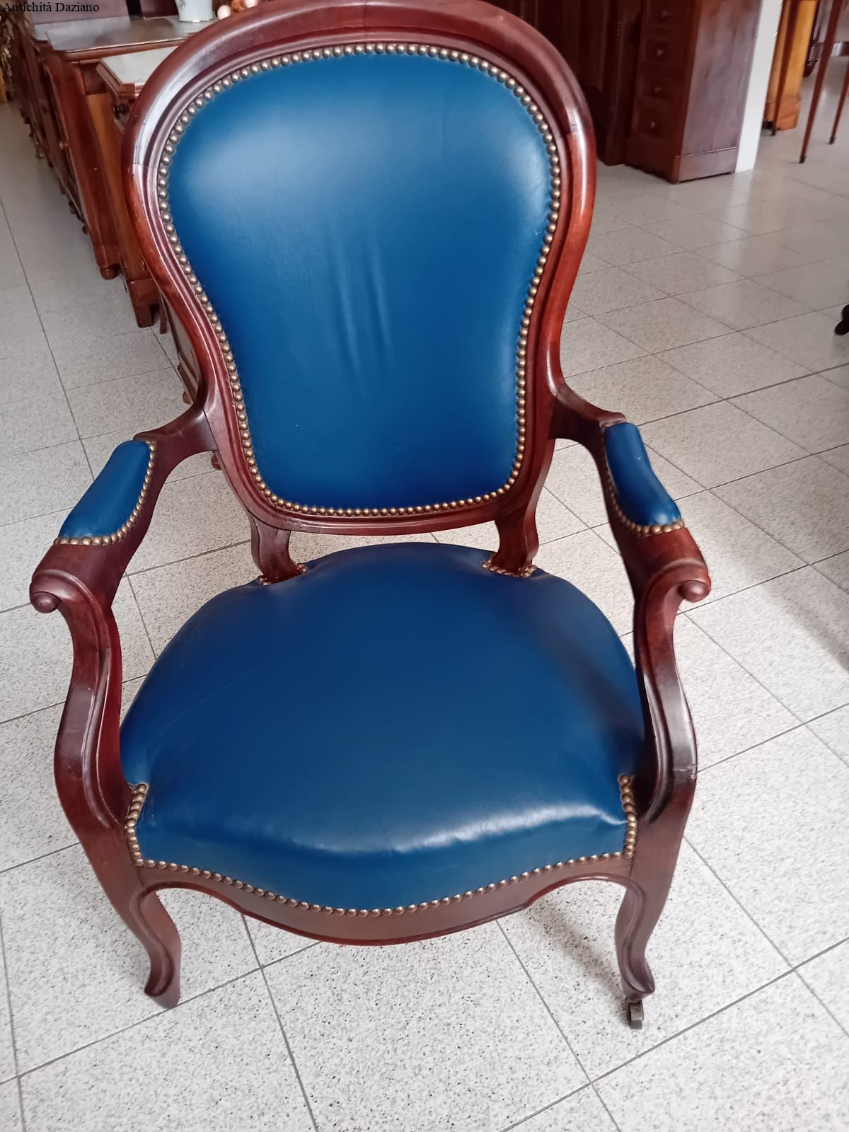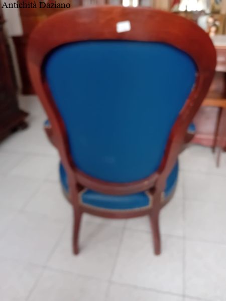 in mogano con rivestimento in pelle blu, epoca 800.