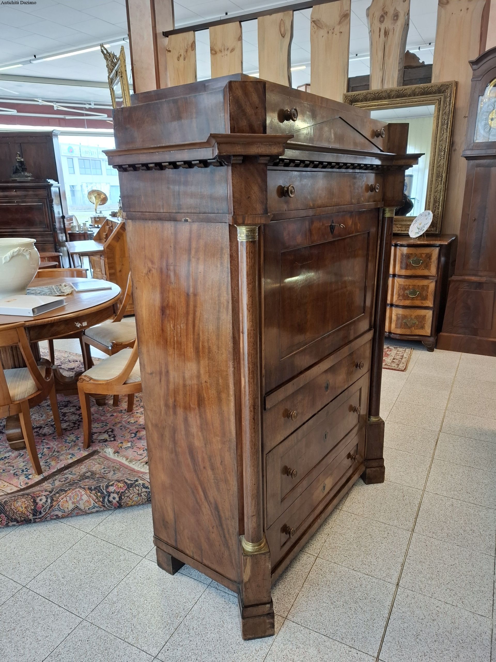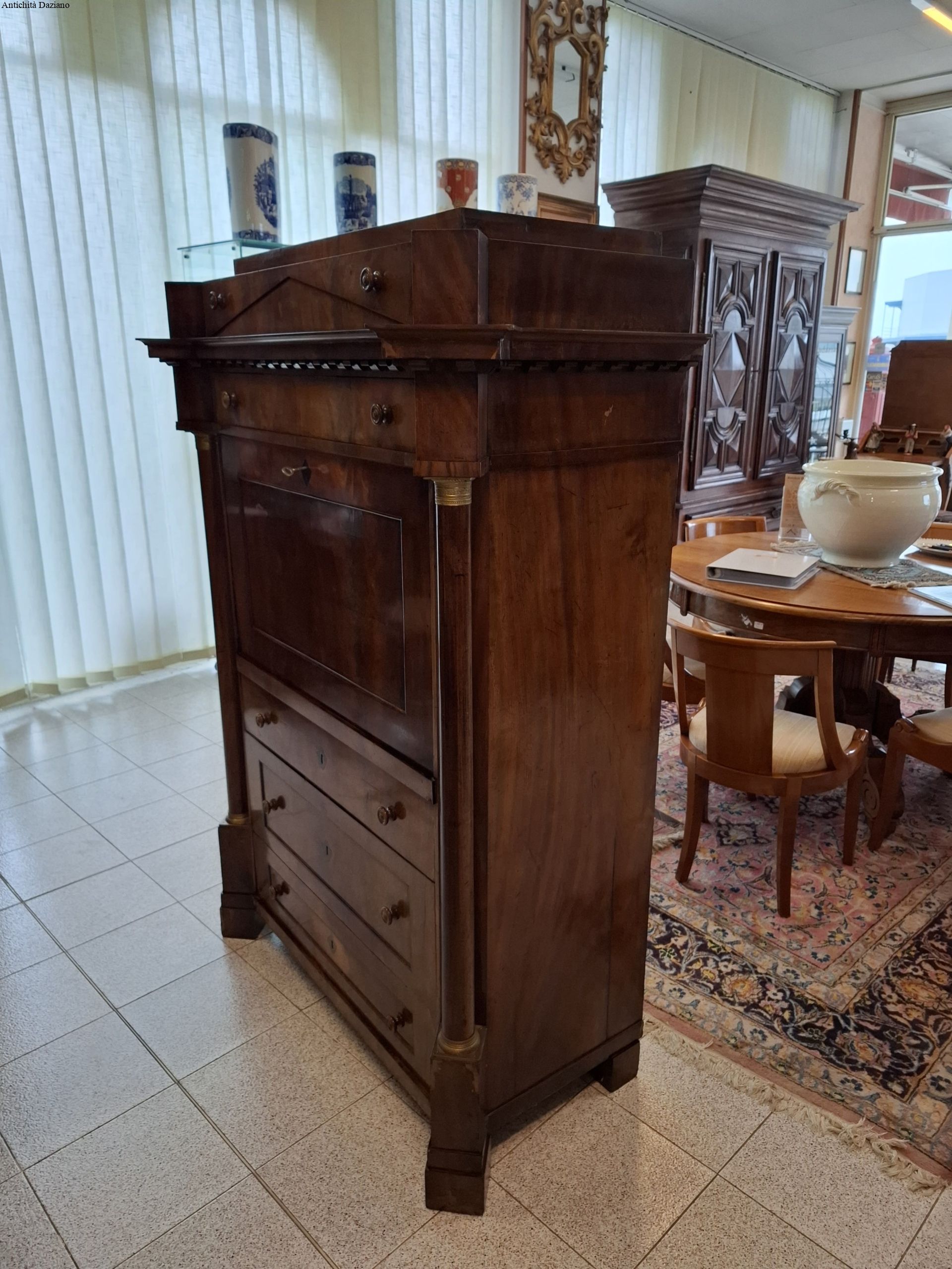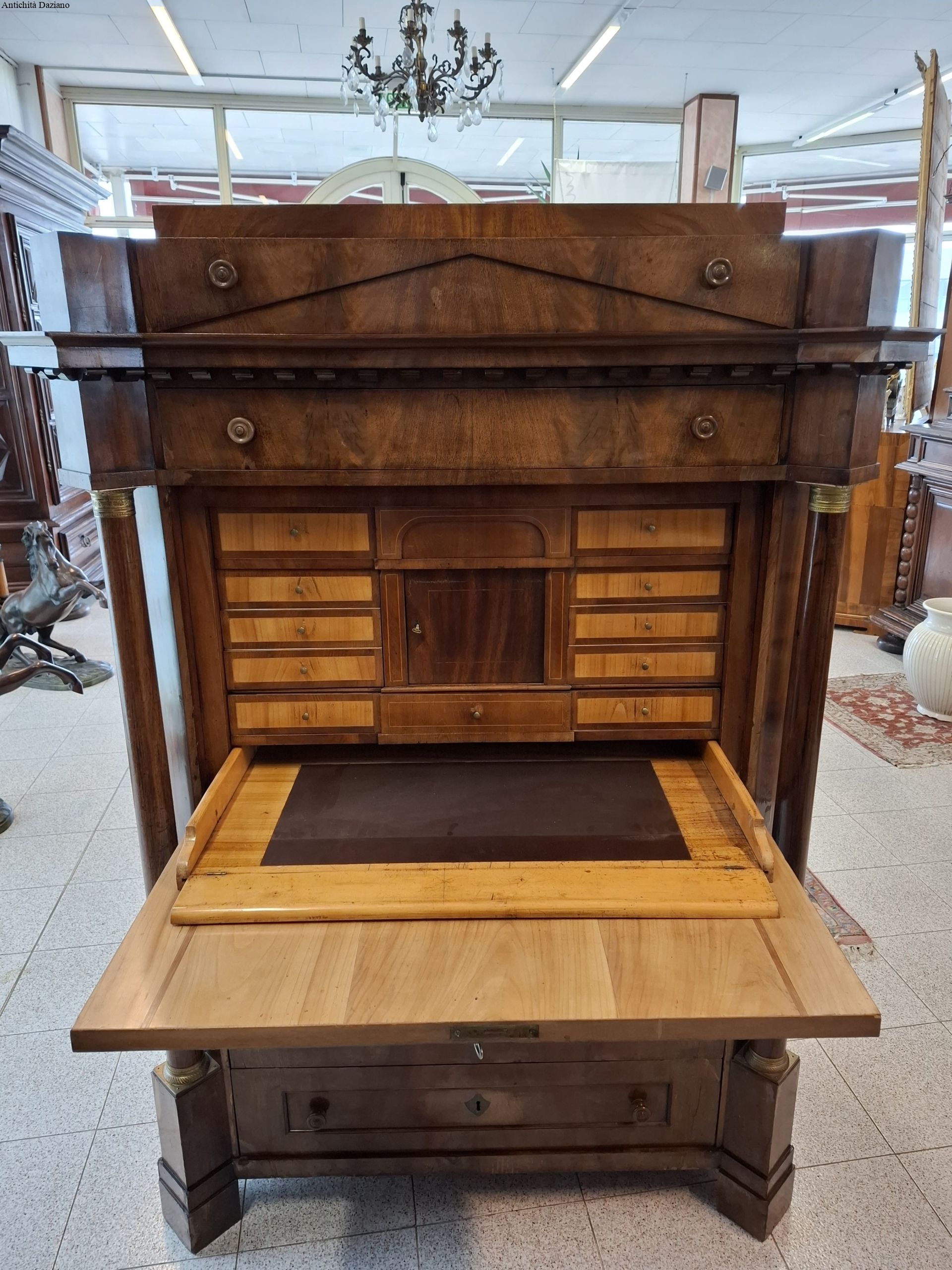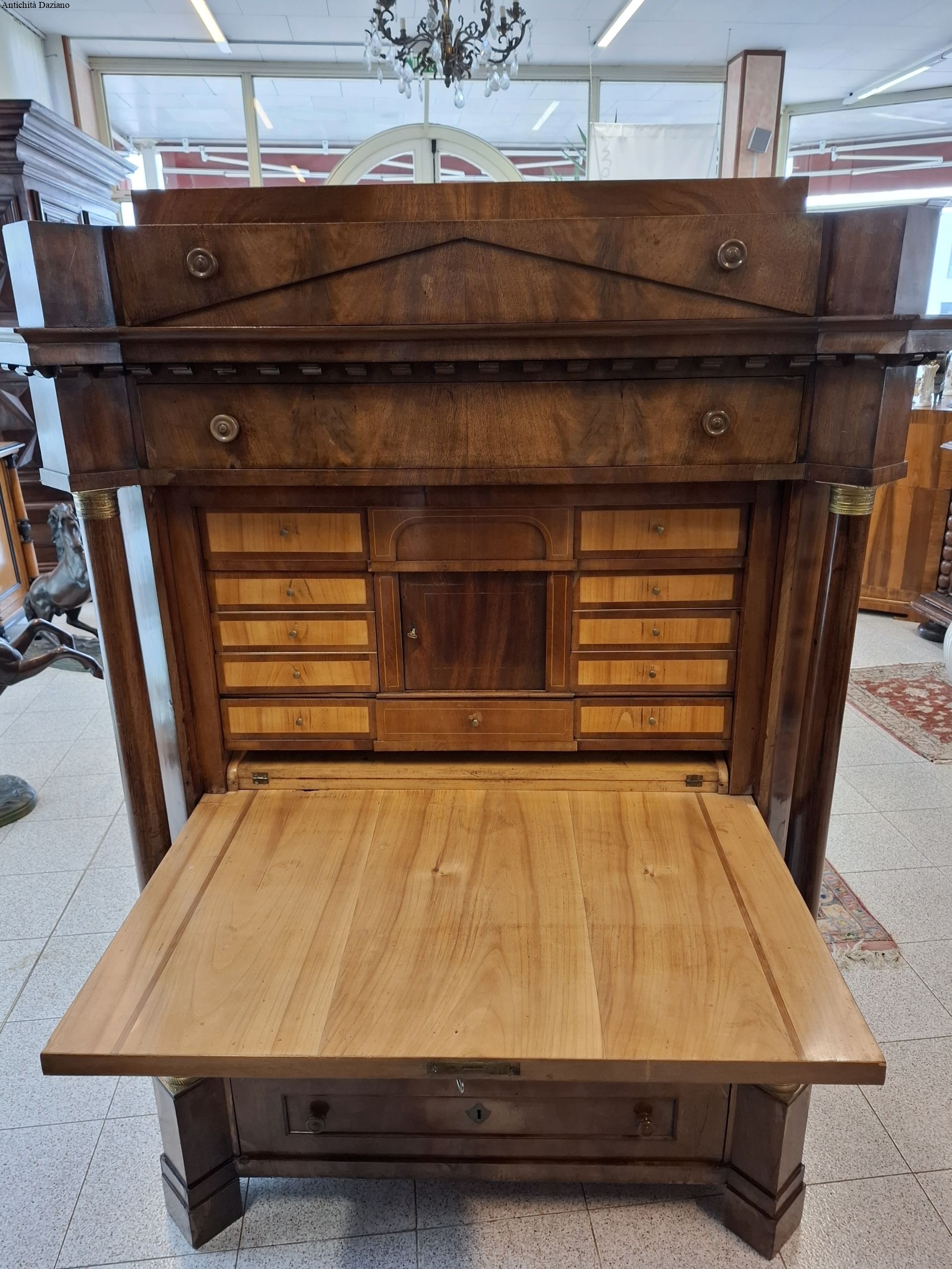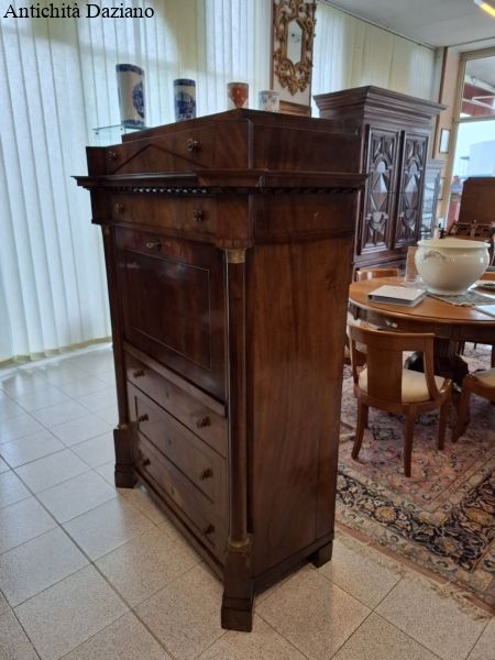 Internamente i cassetti sono in mogano biondo è presente anche un doppio piano scorrevole.