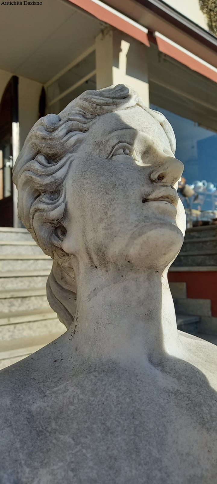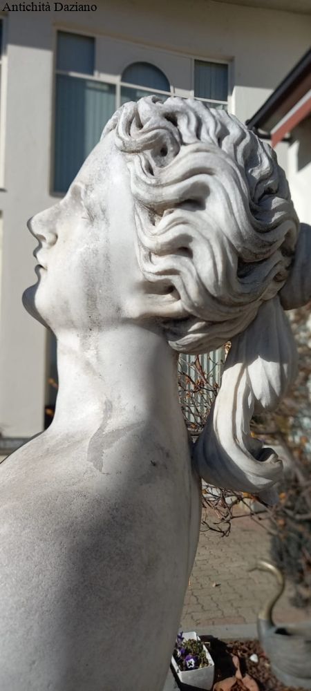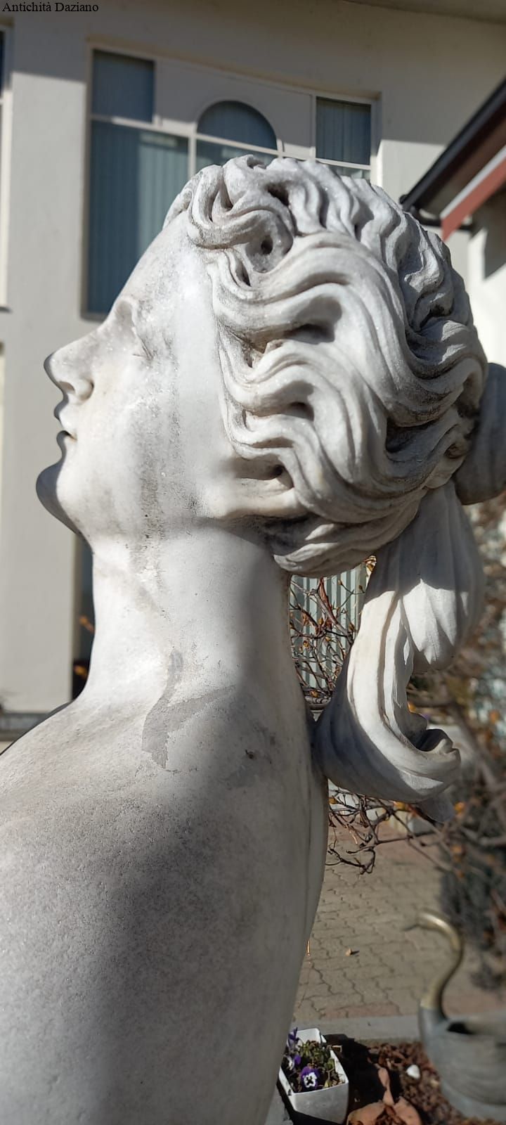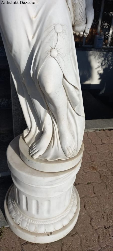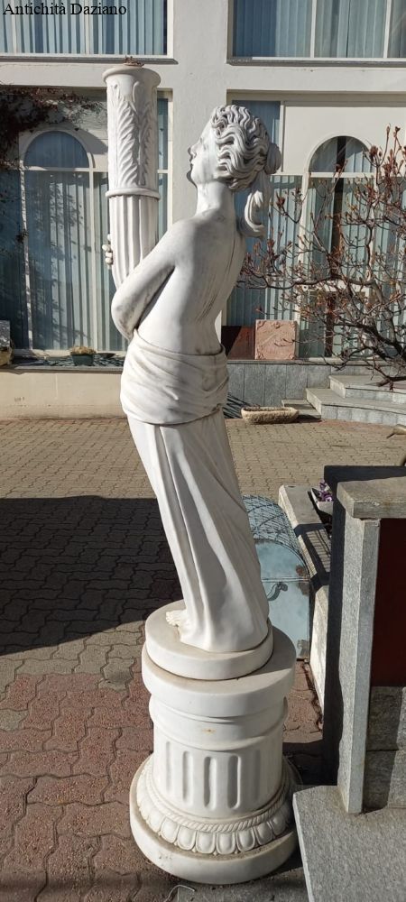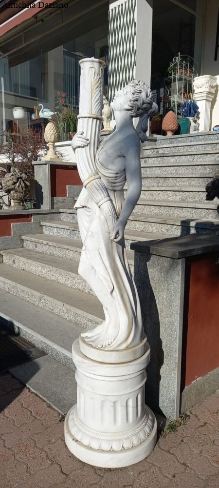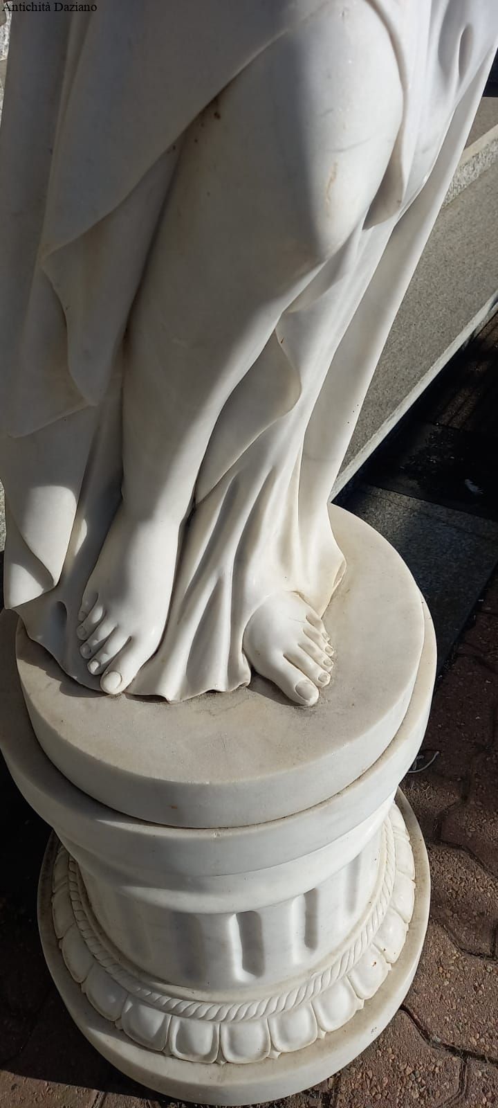 coppia di statue in marmo bianco, piedistallo con scalanature