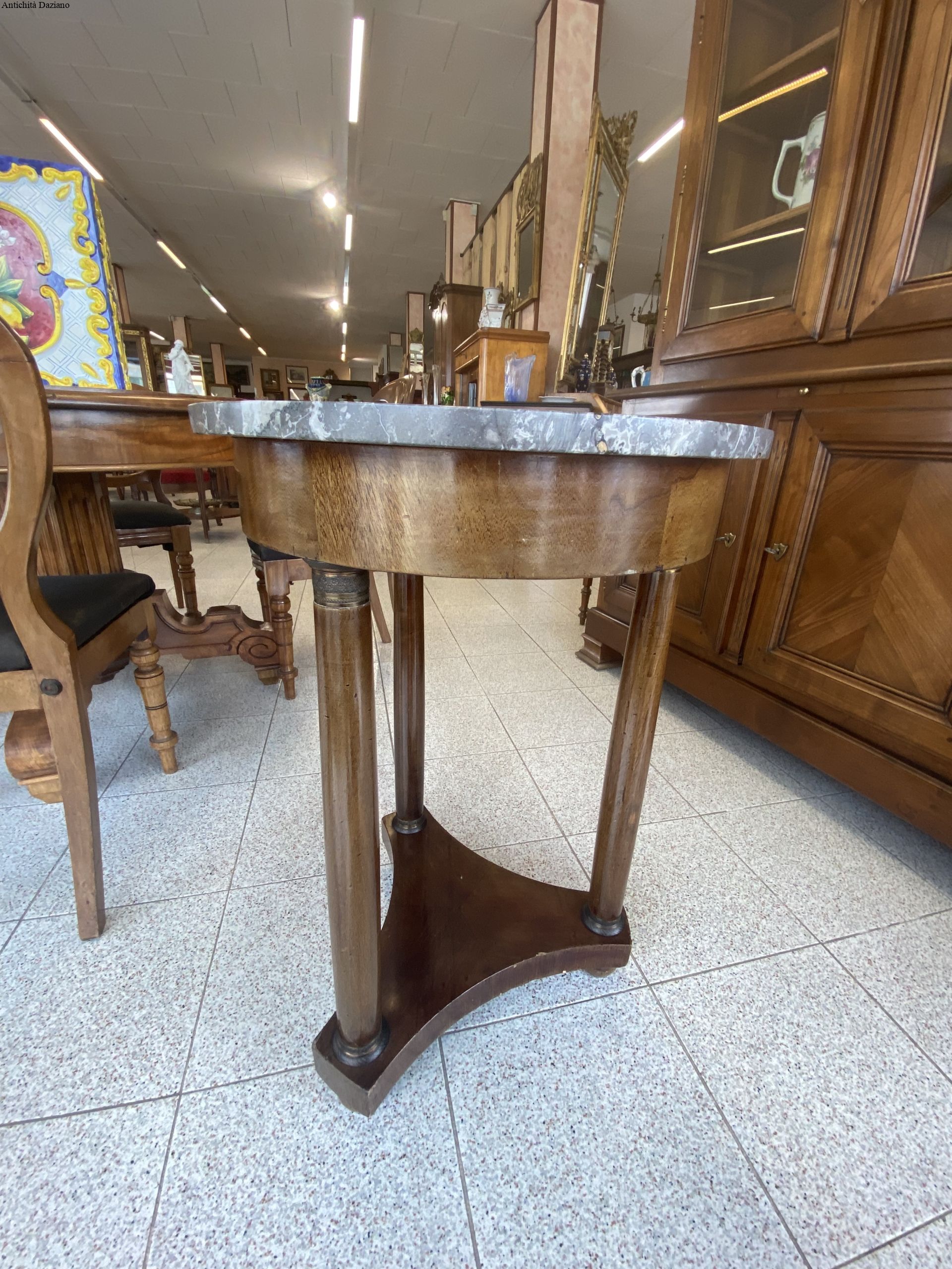 Descrizione: Tavolino in mogano con superficie in marmo.
